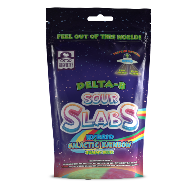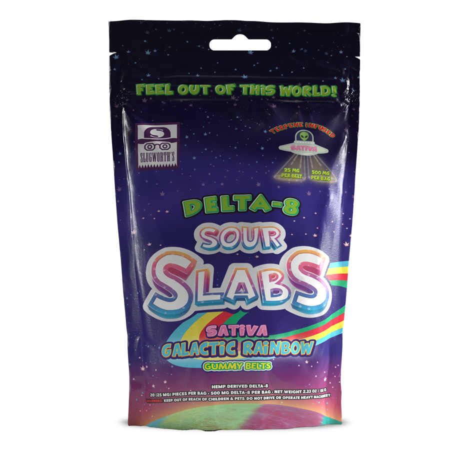Don’t forget to start your day off right by eating your WEEDIES! Slugworth’s Sativa Sour Slabs are infused with Limonene and Terpinoline terps, and of course the magical Delta 8. Blast off for breakfast with these amazing gummy belts.